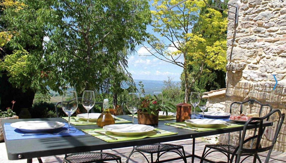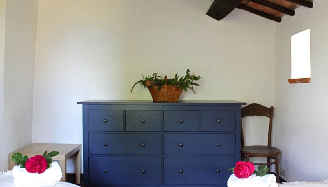 Immersa nella quiete della campagna umbra, Olea è un'antica casa colonica in pietra risalente al 1600, restaurata con materiali tradizionali come cotto, mattoni e travi in legno, e circondata da un rigoglioso giardino mediterraneo che regala viste spettacolari su pini, querce e maestosi cipressi secolari.