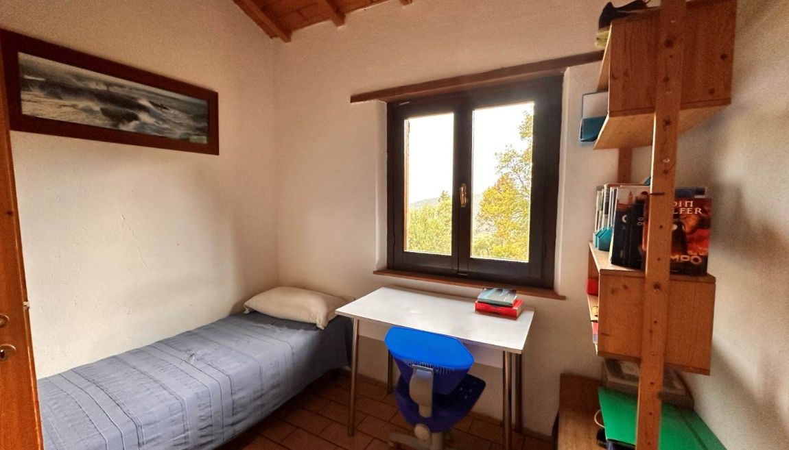 In posizione tranquilla e soleggiata, abitazione indipendente di circa 110 mq disposta su un unico livello, circondata dal verde e con splendida vista panoramica.