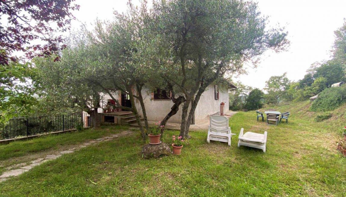 Proprietà panoramica costruita nel 1990 con ampio giardino, magazzino e terreni annessi.